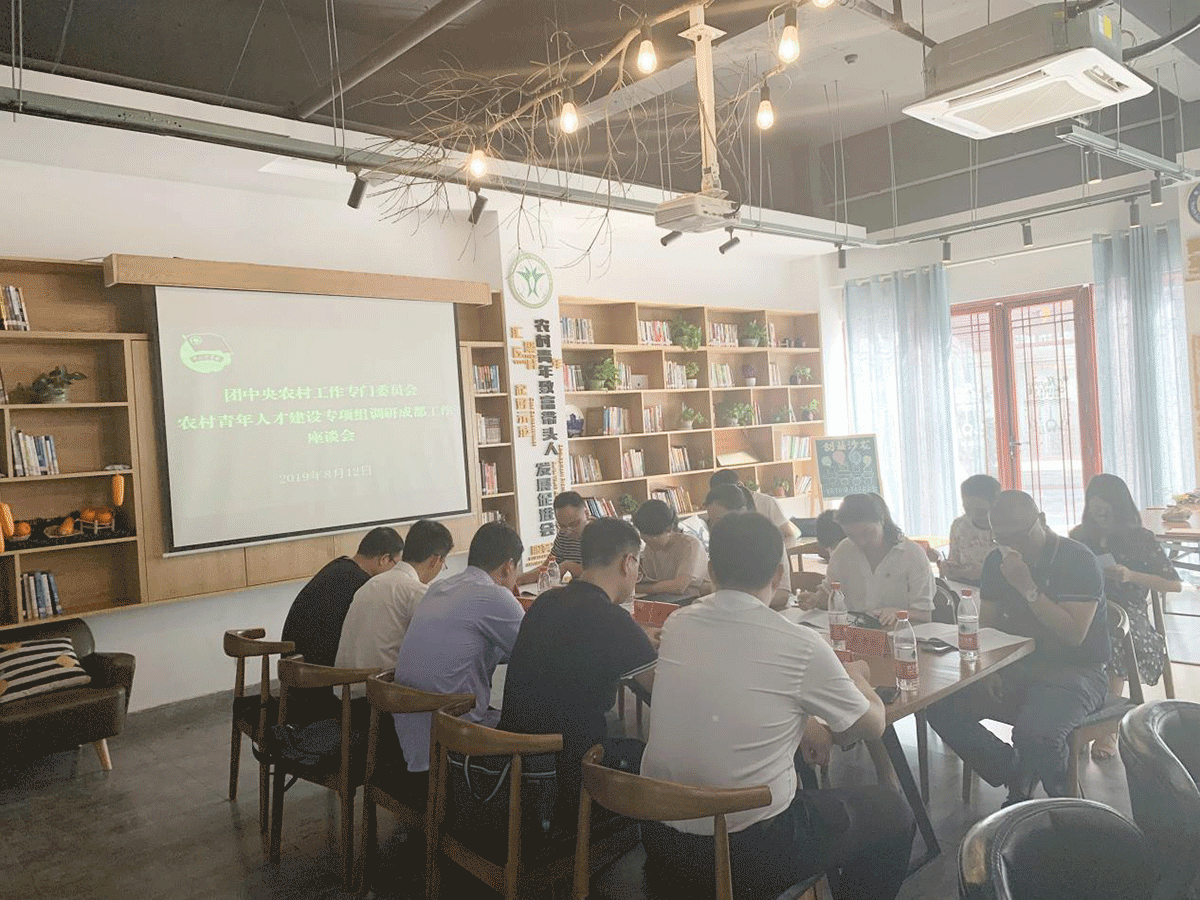 2019年8月12日,我公司总经理蔡雪松先生在战旗村“青年之家”乡村振兴功能店参加共青团中央农村工作专门委员会农村青年人才建设专项组在郫都区调研工作会议。